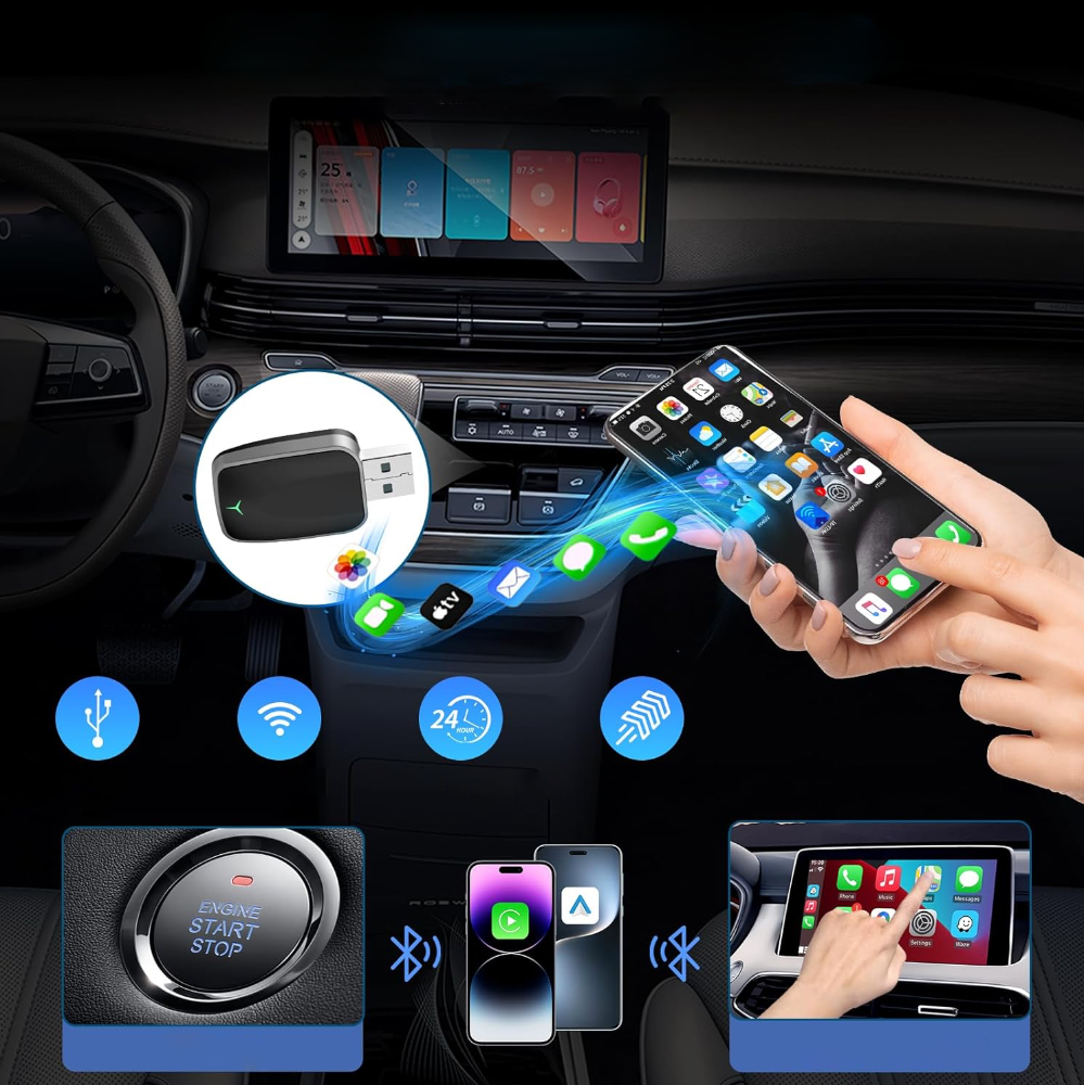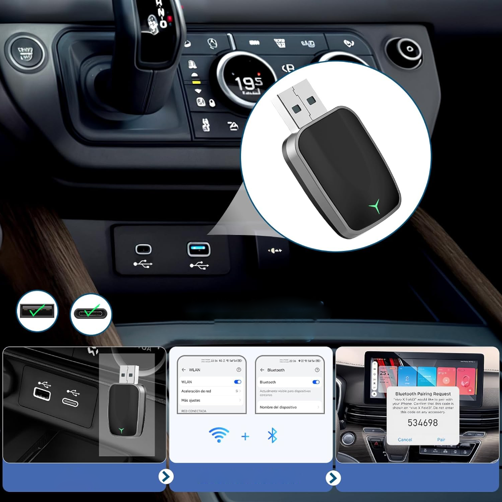 Mit automatischer Geräteerkennung, stabiler Bluetooth- und Wi-Fi-Verbindung sowie einfacher Einrichtung liefert dieser Adapter Echtzeit-Zugriff auf Navigation, Musik, Anrufe und Apps, ohne Kabelsalat. Perfekt für Fahrer, die Innovation, Effizienz und Komfort kombinieren möchten.